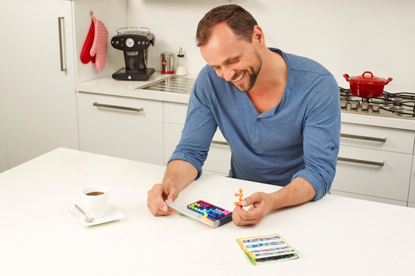Fit all the 3D-puzzle pieces on the game board so it turns into a flat 2D image. One of the protruding sides of each puzzle piece has 1 ball, the other side has 2 balls. So, depending on how you orientate a puzzle piece, you get more or less balls. When each challenge is solved correctly, all the puzzle pieces will fit on the game board without any holes left uncovered!