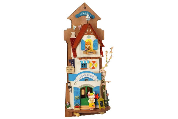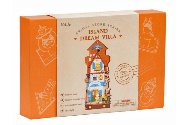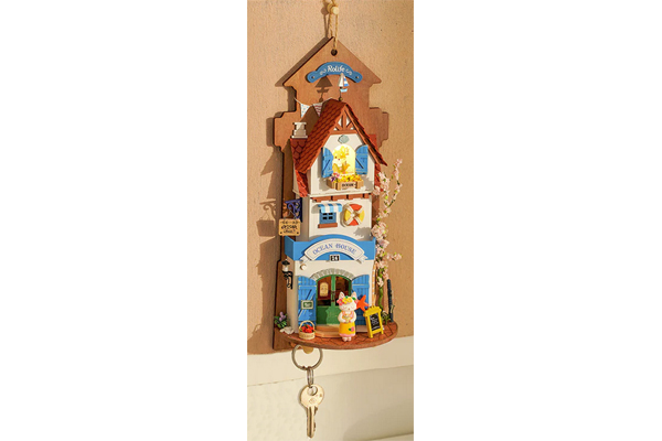 Island Dream Villa is a multi-functional wall-hanging miniature “Ocean House” that can be either a part of your home’s wall decor or transform into a miniature house to sit on your desk or a shelf. It features the warm glow of an LED light and has 2 shaker pegs at the bottom to hang keys if it’s mounted on the wall. The base can also be pulled out so it can sit on a shelf or desk.