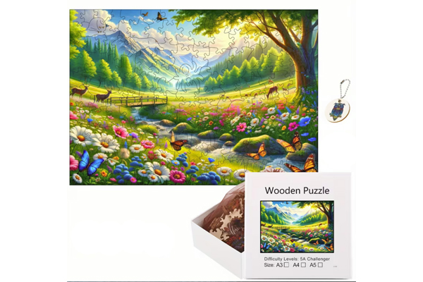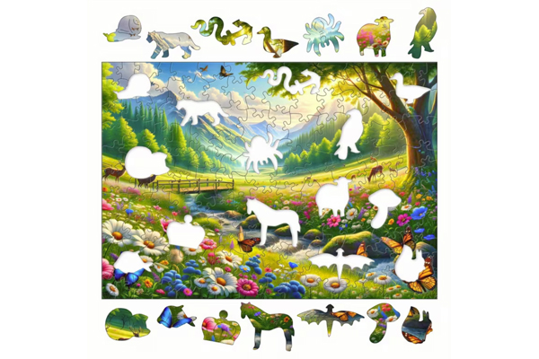 Unique wooden puzzles with captivating images, irregular-shaped pieces and hidden surprises!