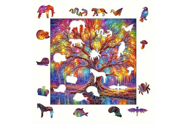 Unique wooden puzzles with captivating images, irregular-shaped pieces and hidden surprises!