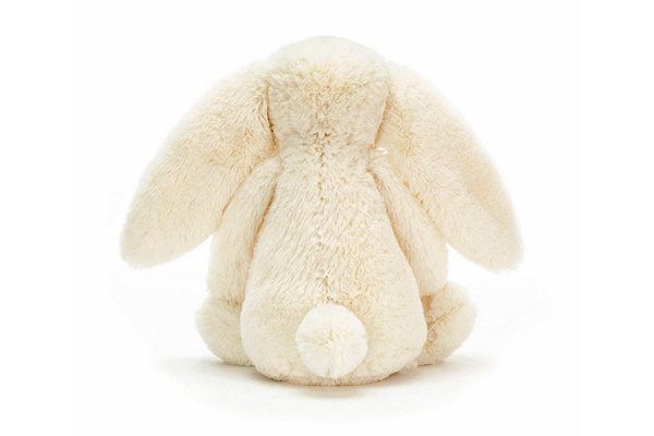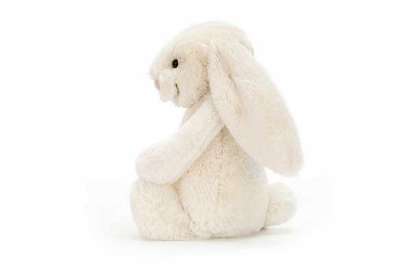 When sitting, Little Bashful Cream Bunny measures approx. 23 cm / 9″ tall.
