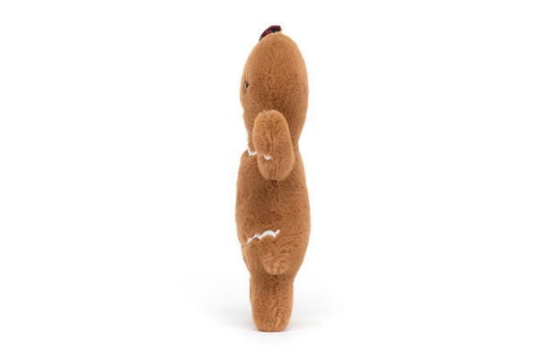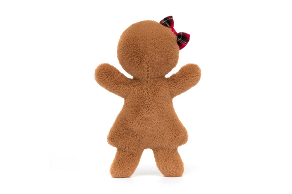Jolly Gingerbread Ruby can’t wait for Christmas! She’s all glammed up in a stitched icing dress and her cozy fur is baked to perfection. With embroidered lashes and a tartan hair bow, and biscuit arms aloft, Ruby shines!