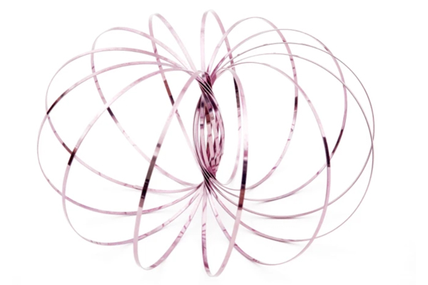 Compress the MOZI Flow Rings to a flat shape by pressing down with your palm on the top of the sphere and rotating counter-clockwise. Hold the flat MOZI in your open palm, then lightly toss it into the air and it will pop back into a sphere. You can learn to catch and trap a small object inside the sphere – like a little cage – with a bit of practice.