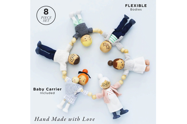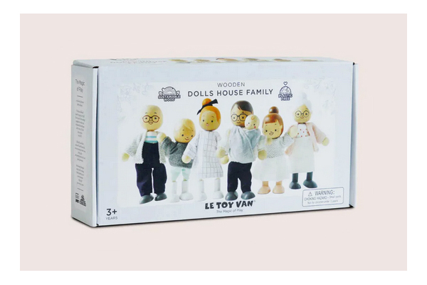 A wonderful wooden “bendy” family of dolls, with cute clothes, made by Le Toy Van to be sturdy and have great, long-lasting play value.